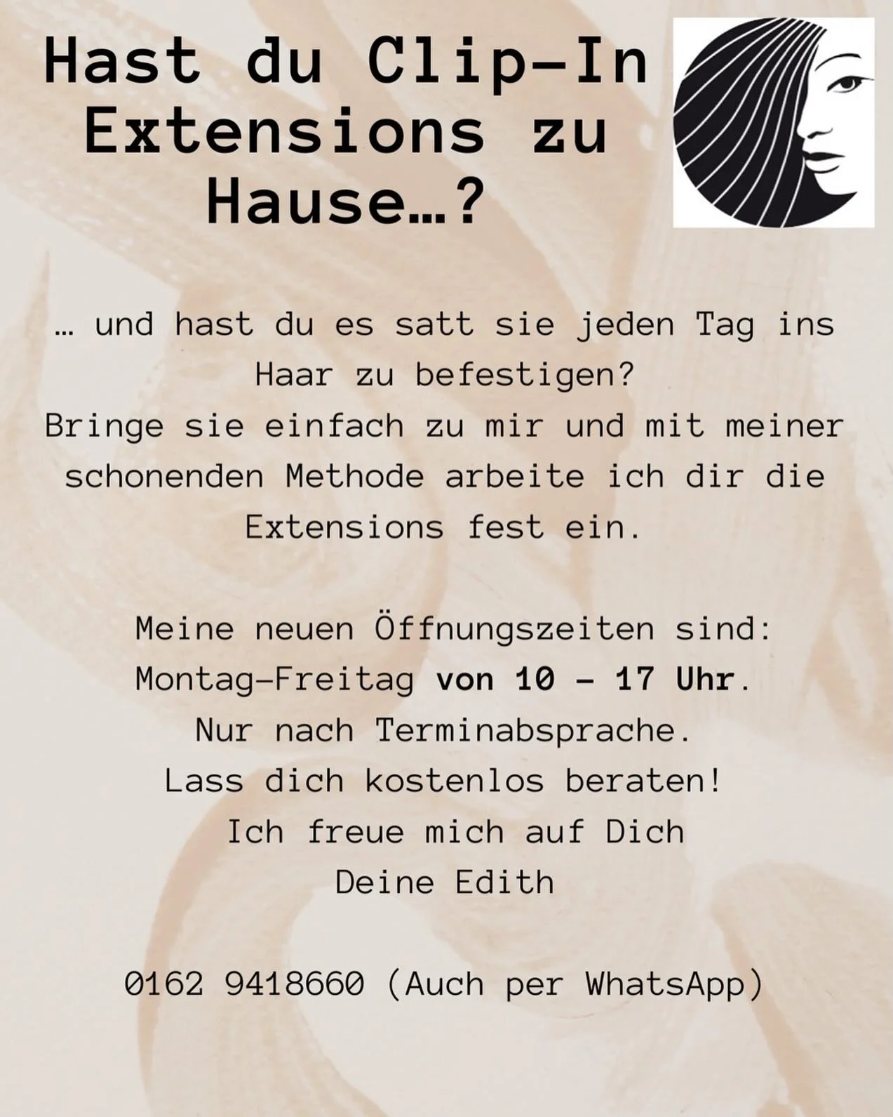 Ich heiße Edith, bin eine gebürtige Afrikanerin und damit liegt mir das Haareflechten schon im Blut. Ich habe in meiner Heimat von klein an viel über Haare und Haarverlängerungen gelernt und kam dann vor über 20 Jahren schon als gelernte Hair-Stylistin nach Europa. Wann immer möglich habe ich dann auch die Chance genutzt mein Wissen in mehreren Schulungen zu vertiefen, vor allem in Paris und München.